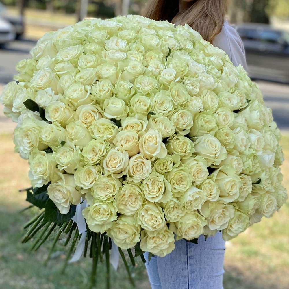 Акция! 151 белая роза Premium 50 см.
